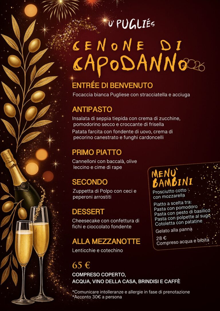 Vieni da U’ Pugliés: menù di Capodanno, brindisi, amici e pancia felice 🍾🍝
