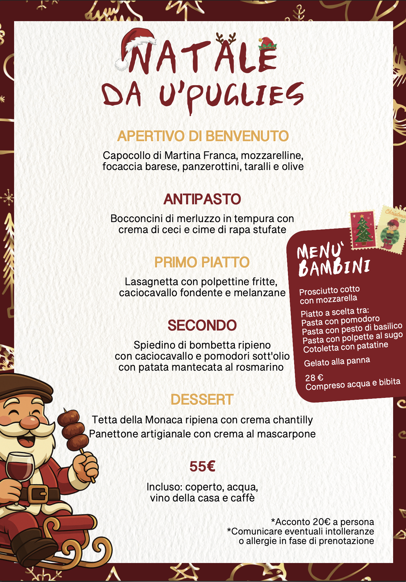 Il 25 dicembre… Babbo Natale pranza da U’ Pugliés! E tu che fai, resti al Polo Nord?Passa il Natale con noi: menù speciale, risate e Puglia nel piatto ❤️🍝 PRENOTA ORA